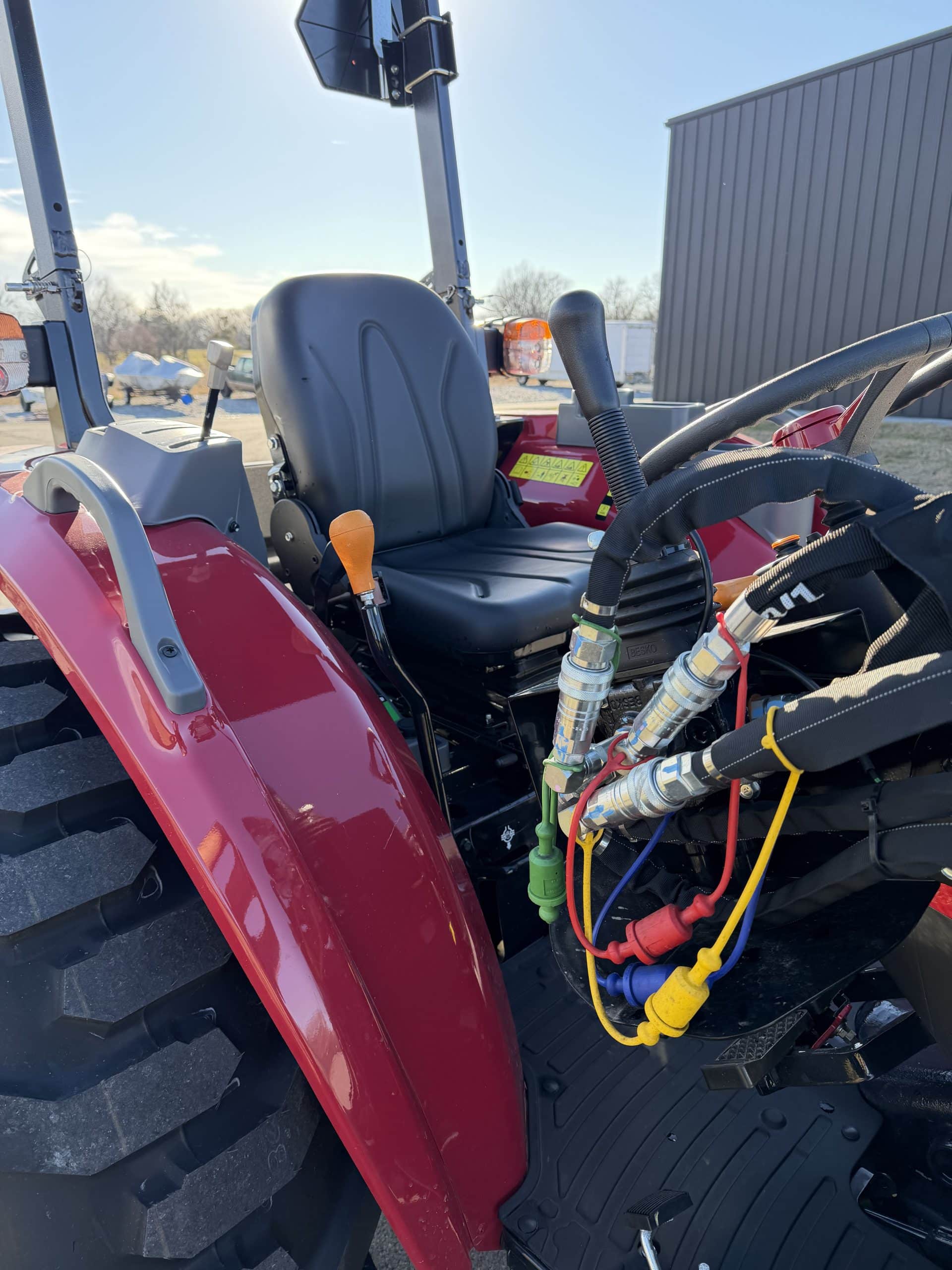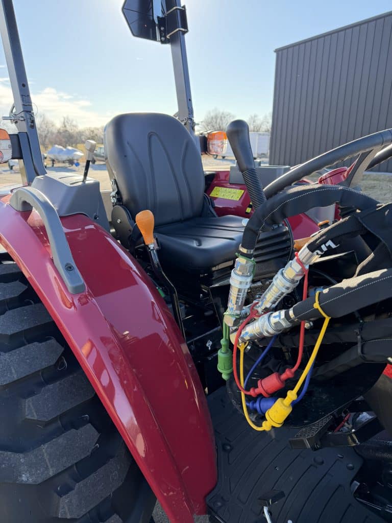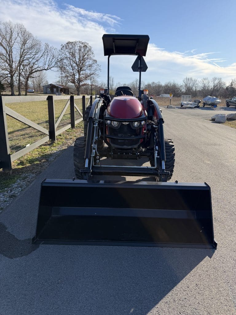 Gross Power: EPA Regulation HP (kW) 46 HP Overall length (with 3PH and R4 Tires) 133.6 (2190) Overall Width (with R4 Tires) 70.9 (1801) Overall Height (with Roll-Over Protection, and R4 tires) 98.0 (2490) Transmission Synchronized Shuttle Shift Drive Type Lift Capacity (Pivot Pin) lb. (kg) 2500 Bucket Width in. (mm) 72” (1829mm) PTO Power HP (kW) 35.5 HP Rear PTO Speed/Engine RPM 540/540E Mid PTO Speed/Engine RPM Wheel Base 74.8″ Front Tires (with R4) 10.0″ – 16.5″ Rear Tires (with R4) 17.5″ L – 24″ 3-Point Hitch Category 1 & 2